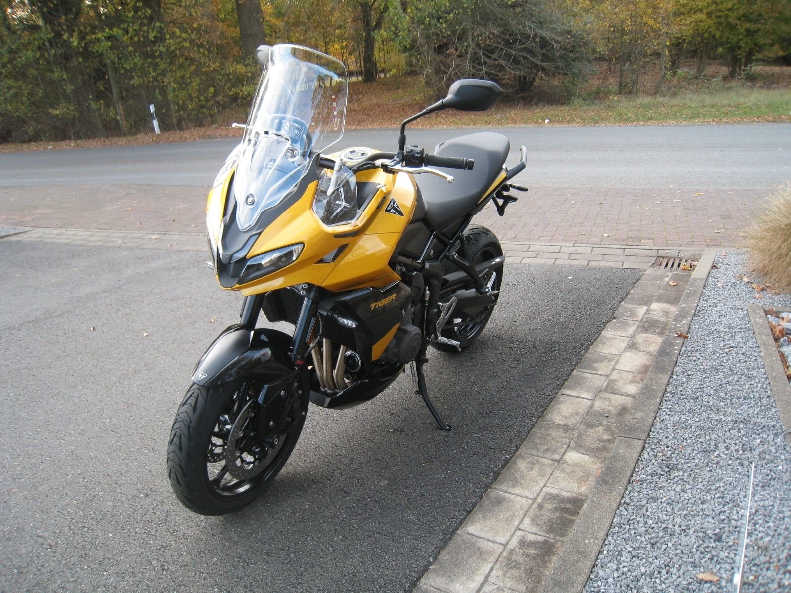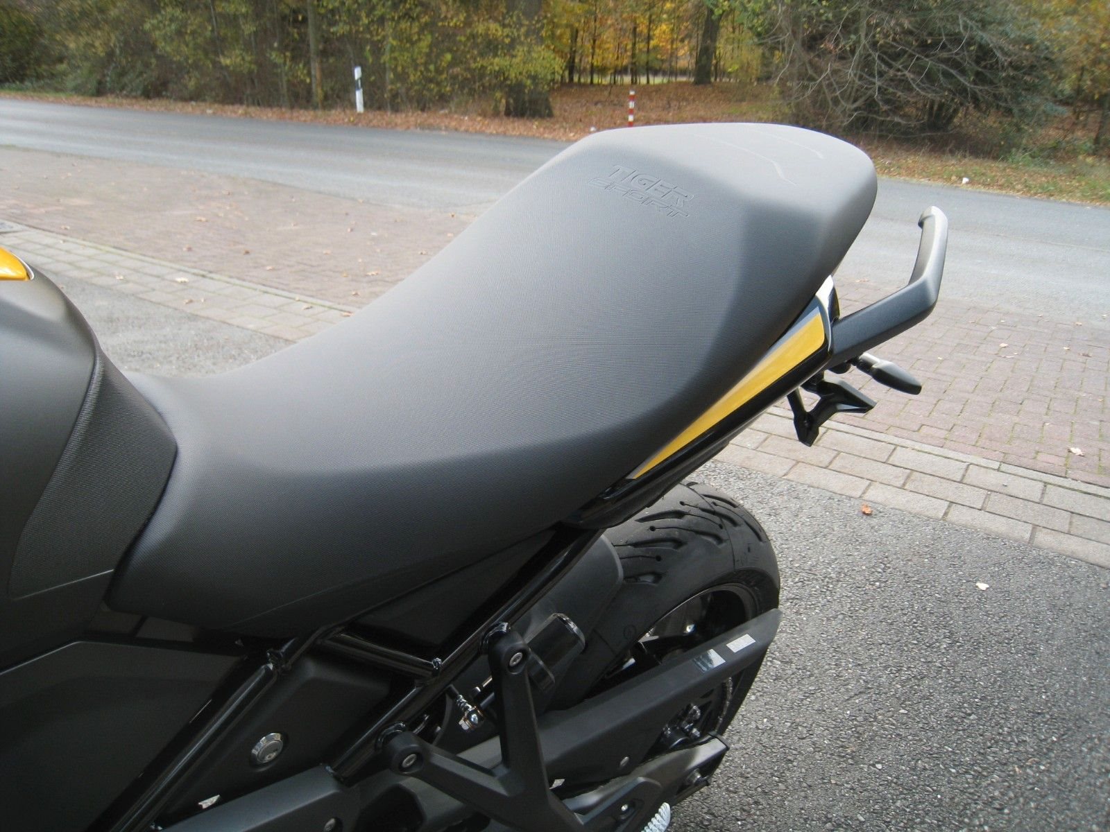- Fahrwerk & Handling: Die Tiger 900 bietet ein stabiles Gitterrohrfahrwerk und hochwertige, je nach Modell einstellbare Fahrwerkskomponenten (z.B. von Marzocchi oder Showa), die sowohl auf der Straße als auch im leichten Gelände eine gute Figur machen.